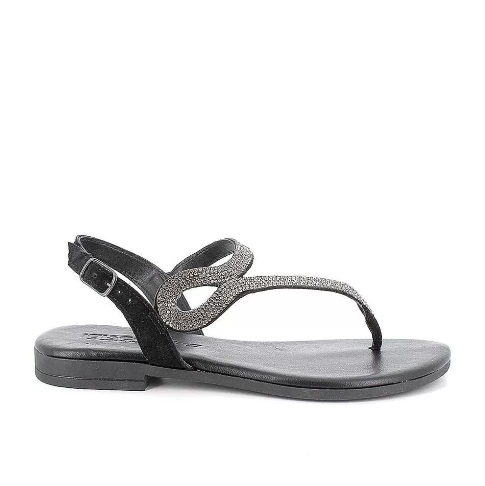Black Women’S Leather Flip Flop Sandals-Igi&Co Clearance