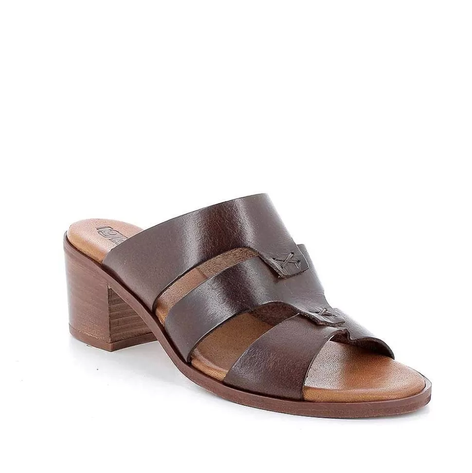 Dark Brown Women’S Leather Heeled Sandals-Igi&Co Hot