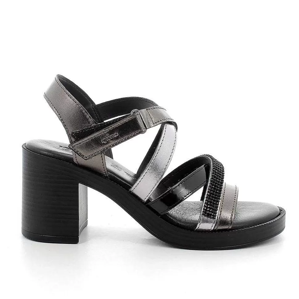 Dark Gray Women’S Leather Heeled Sandals-Igi&Co Store