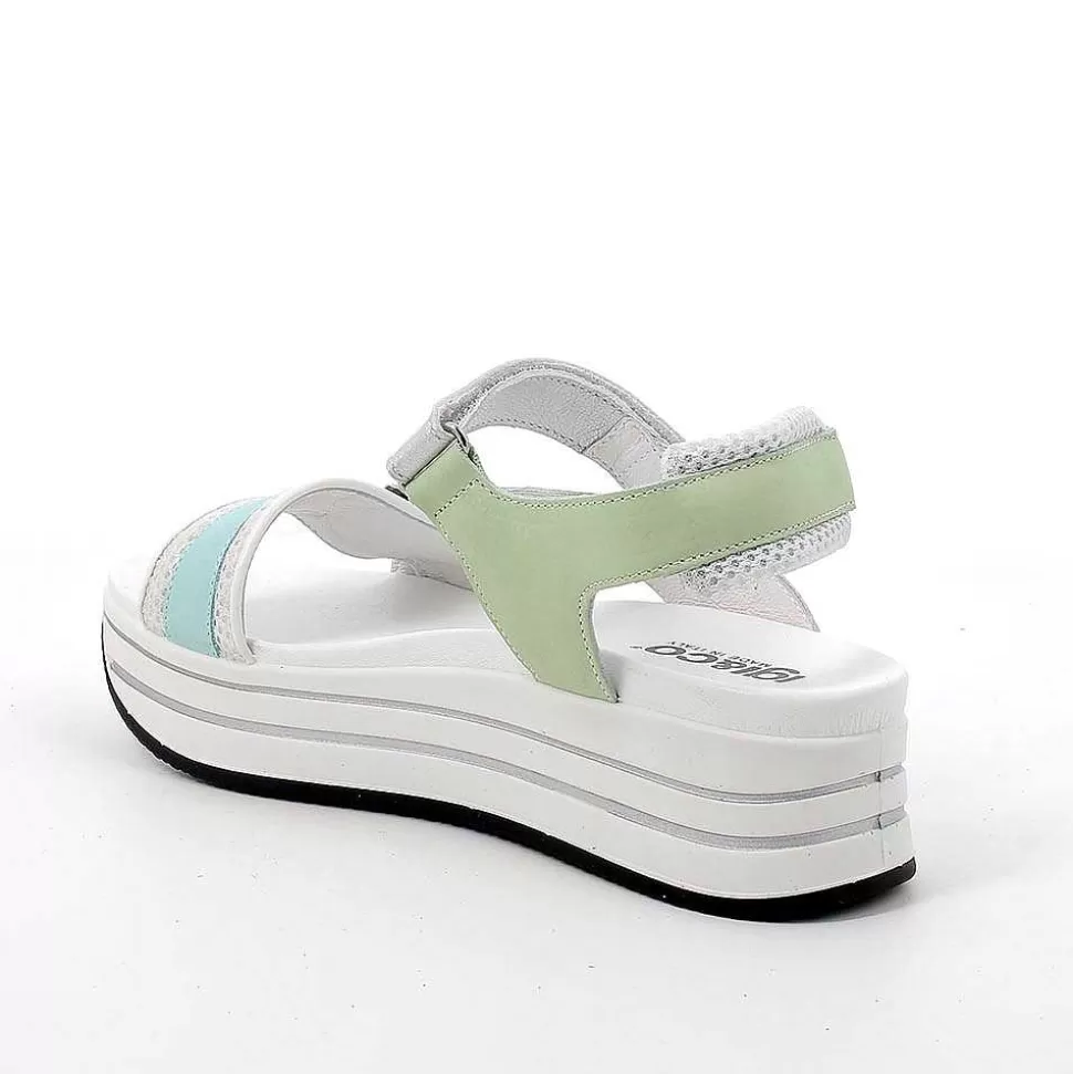White-Green Women’S Leather Wedge Sandals-Igi&Co Best Sale