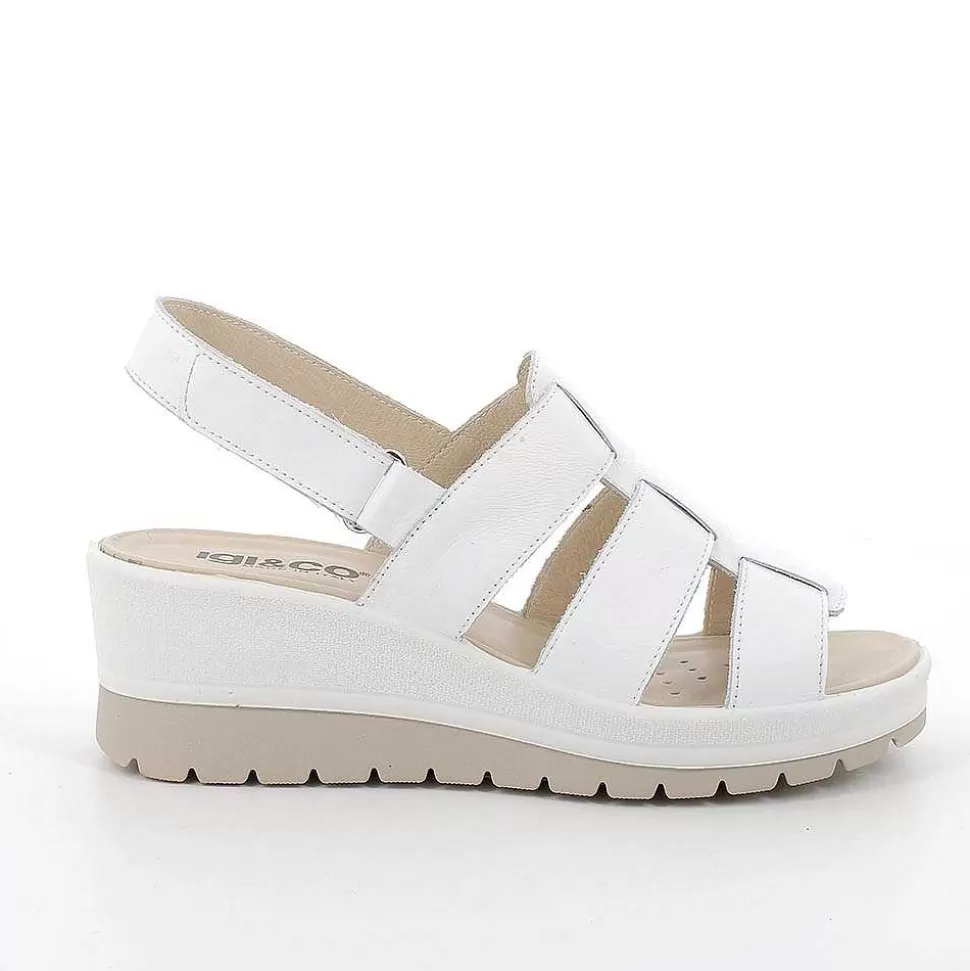 White Women’S Leather Wedge Sandals-Igi&Co Cheap