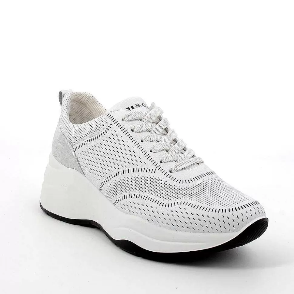 White Women’S Leather Wedge Sneakers-Igi&Co Clearance
